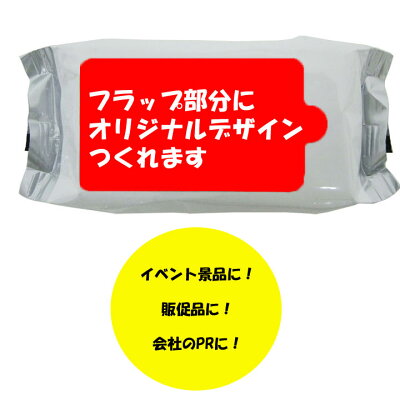 オリジナルウェットティッシュ制作 販促品・ノベルティ景品・企業PRなどに! フラップ名入れウェットティッシュ大量制作がお得です! フラップ名入れ【1C+白】ミニミニウェットティッシュ 香りつき 又 は除菌タイプ ★