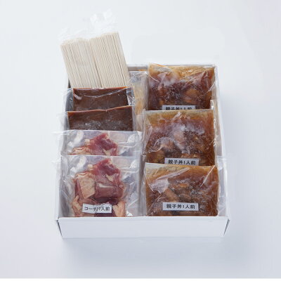 名古屋コーチンがふんだんに入った、昔ながらの太田屋味噌煮込みうどんの素と乾麺のパック、大ぶりのコーチンが入った親子丼の素、2品をセットにしました。